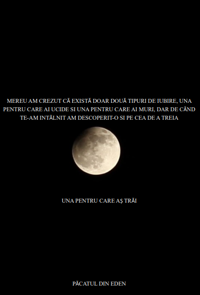 ROMAN LIRIC DE DRAGOASTE, TEME COMPLEXE PRECUM DRAGOSTEA,BLESTEMUL SI DESTINUL, SUNT MÂNDRU SĂ VĂ PREZINT PRIMUL MEU TITLU ,,PĂCATUL DIN EDEN,,